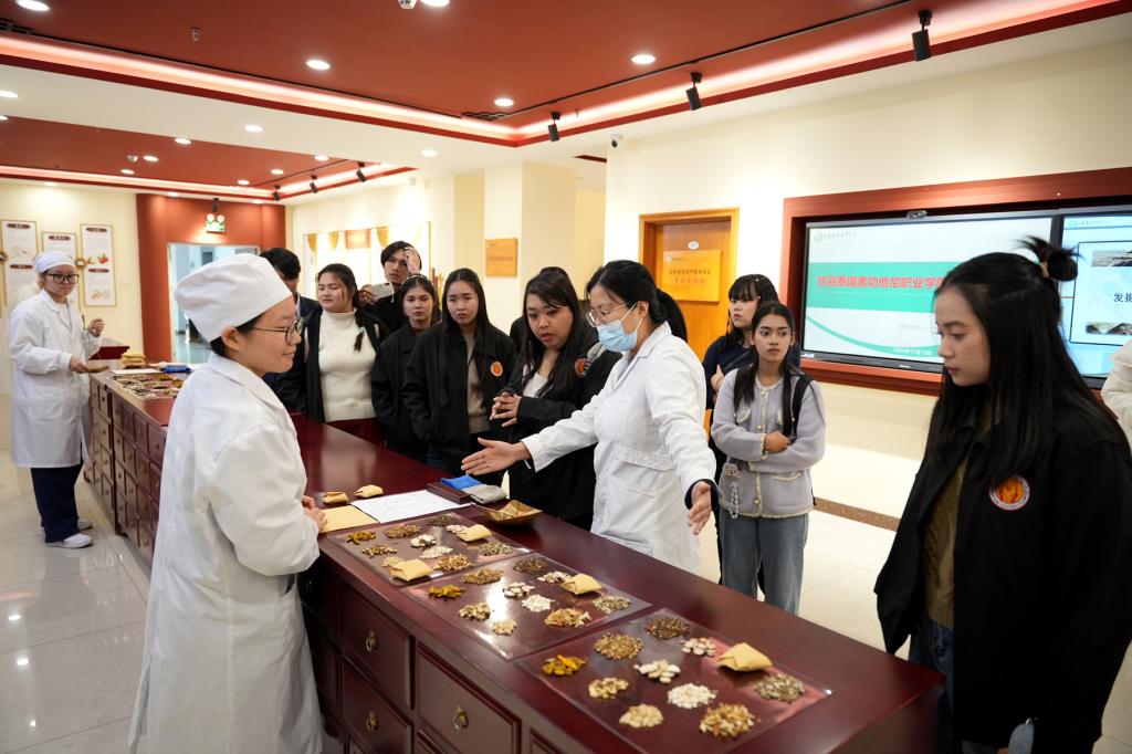 11月12日,泰国素叻他尼职业学院师生来ac米兰进行研学交流访问,学院党委委员、副院长刘志伟参加欢迎仪式,中药系、产教融合中心负责人及教务部相关人员陪同参观。泰国师生实地参观了中药标本厅、中药调剂技艺传承基地、百草大药房、药・茶技能技艺传承与创新实训基地以及...2024-11-13 -
