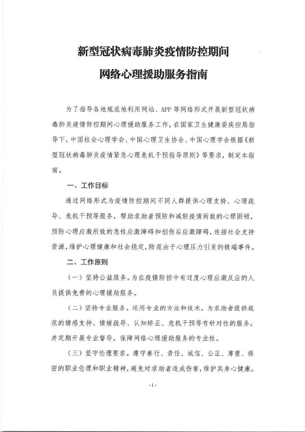 新型冠状病毒肺炎疫情防控期间网络心理援助服务指南