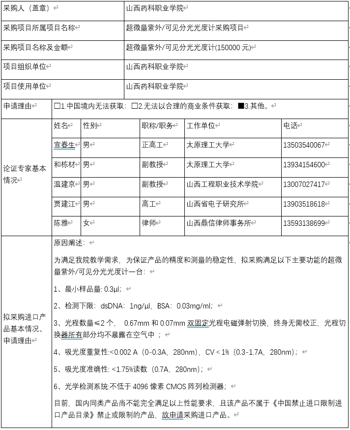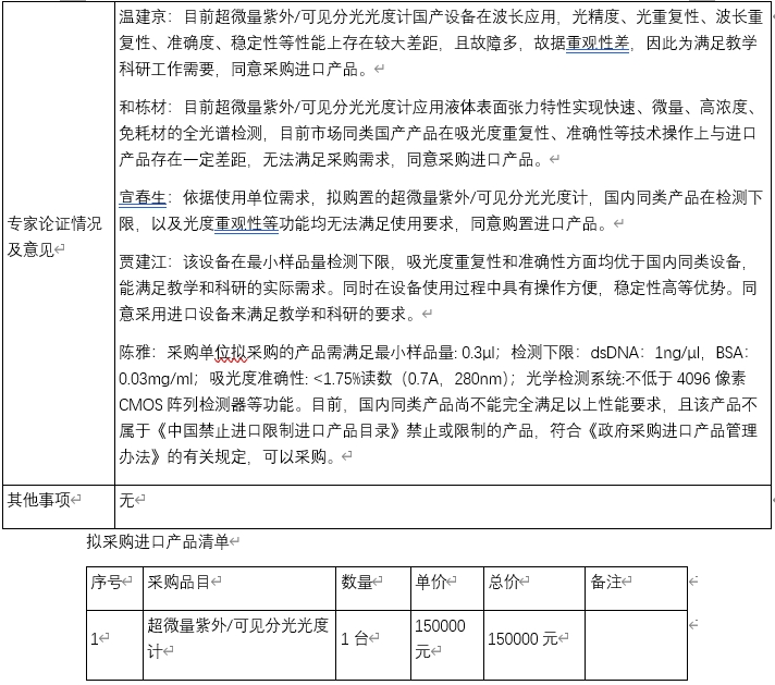 ac米兰官网中文网站超微量紫外/可见分光光度计采购项目拟采购进口产品满足使用需求,现将申请采购进口产品的基本情况、专家论证情况及意见进行公示,公示期为2022年8月3日起至2022年8月9日止(五个工作日)。若对专家组论证意见存在异议,可在公示期内提出,并将相关意见和依据,书面报送采购单位。