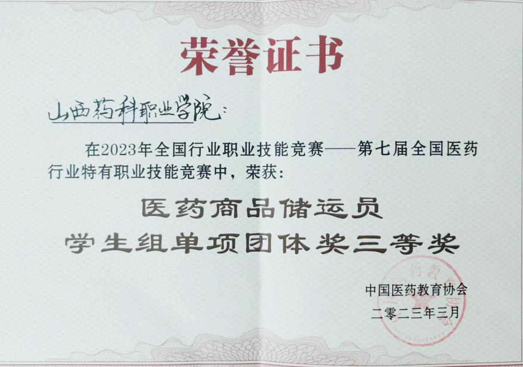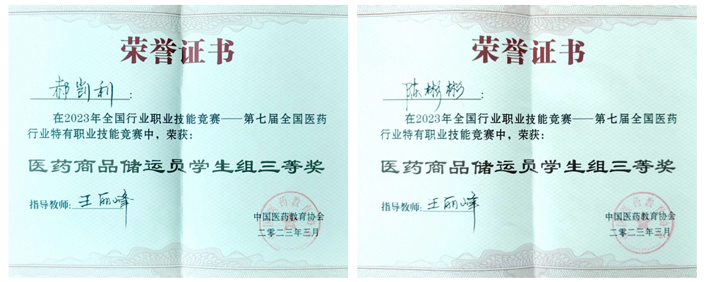 近日,2023年全国行业职业技能竞赛第七届全国医药行业特有职业竞赛——医药商品储运员赛项在山东医药技师学院落幕。ac米兰学生郝剀利、陈彬彬荣获“医药商品储运员”个人三等奖和团体三等奖。