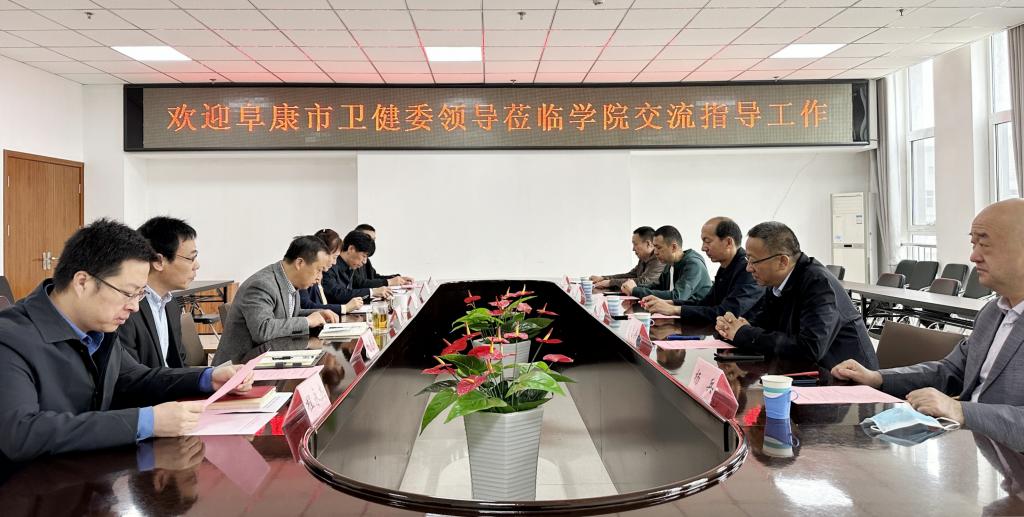 4月13日上午,新疆昌吉州阜康市卫健委党组副书记、主任董勇,阜康市医共体党委副书记、总医院院长朱志英等一行5人莅临ac米兰考察调研,就进一步推动校地融合,促进学生就业高质量发展等事宜进行洽谈。学院领导王旭、张轩萍、刘志伟、原超和学院教务部、学生工作部负责人参加座谈。