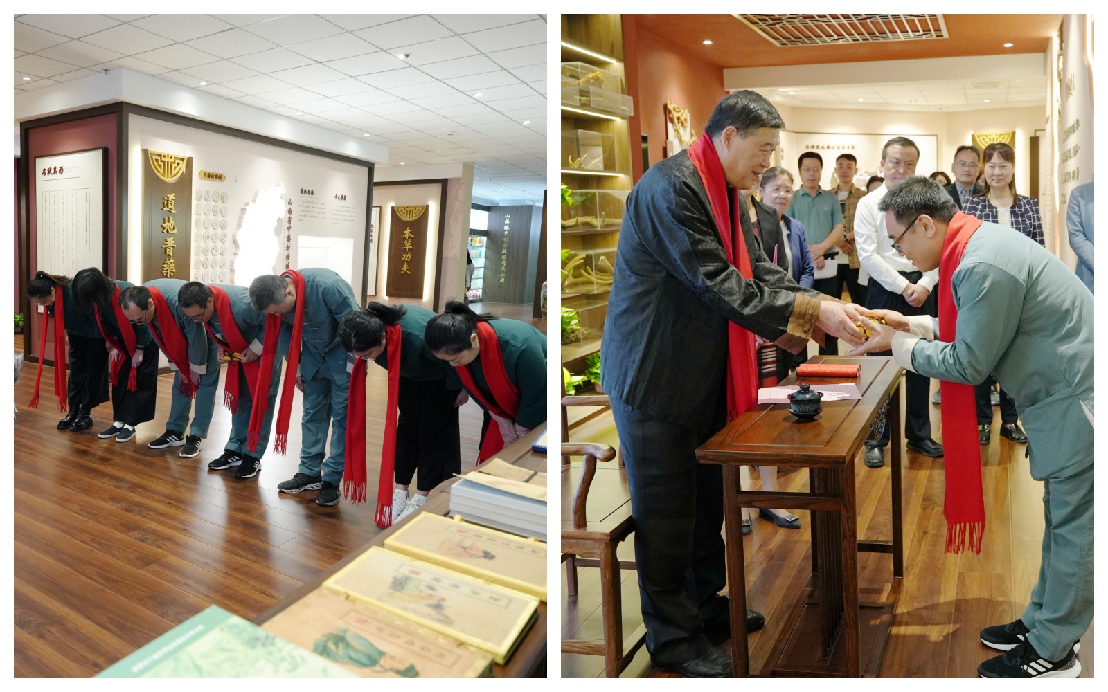 收徒仪式采用中国传统拜师礼仪进行,仪式经过敬拜师茶、行拜师礼、呈拜师帖等环节后,柳惠武先生分别为招收的学院7位新弟子颁发回徒帖,并勉励弟子要勤勉敬业、精研仁术,牢记使命、悬壶济世。