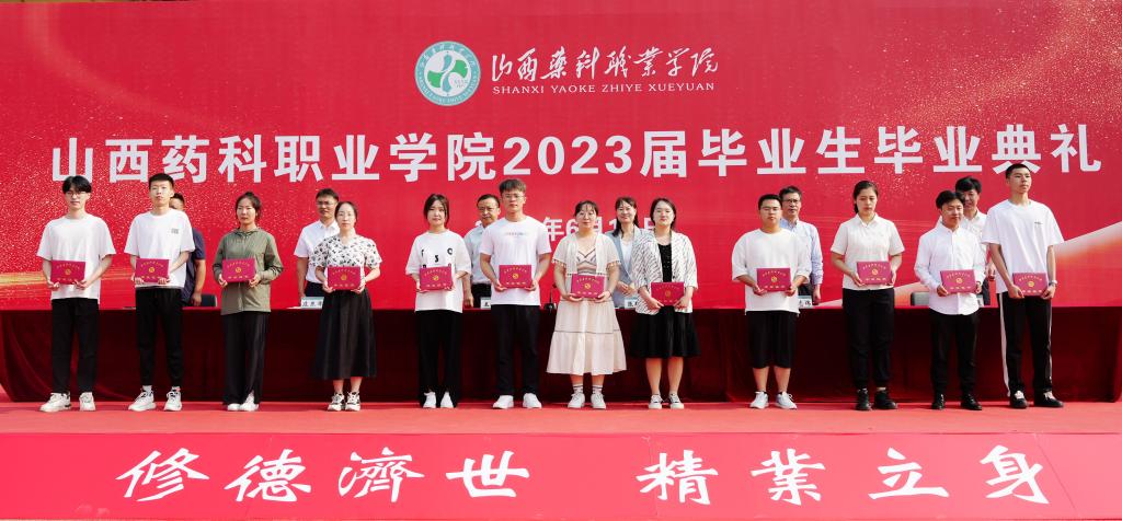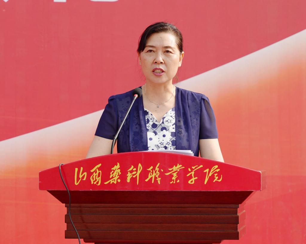 北京同仁堂山西连锁药店有限责任公司经理张静作为校友代表致辞,她回顾了在母校求学的经历,分享了求学求职中的心得体会和成功经验,鼓励即将毕业的学弟学妹,传承“百草”精神,珍惜韶华、矢志奋斗,努力成长为食品药品医疗器械行业的高素质技术技能人才。