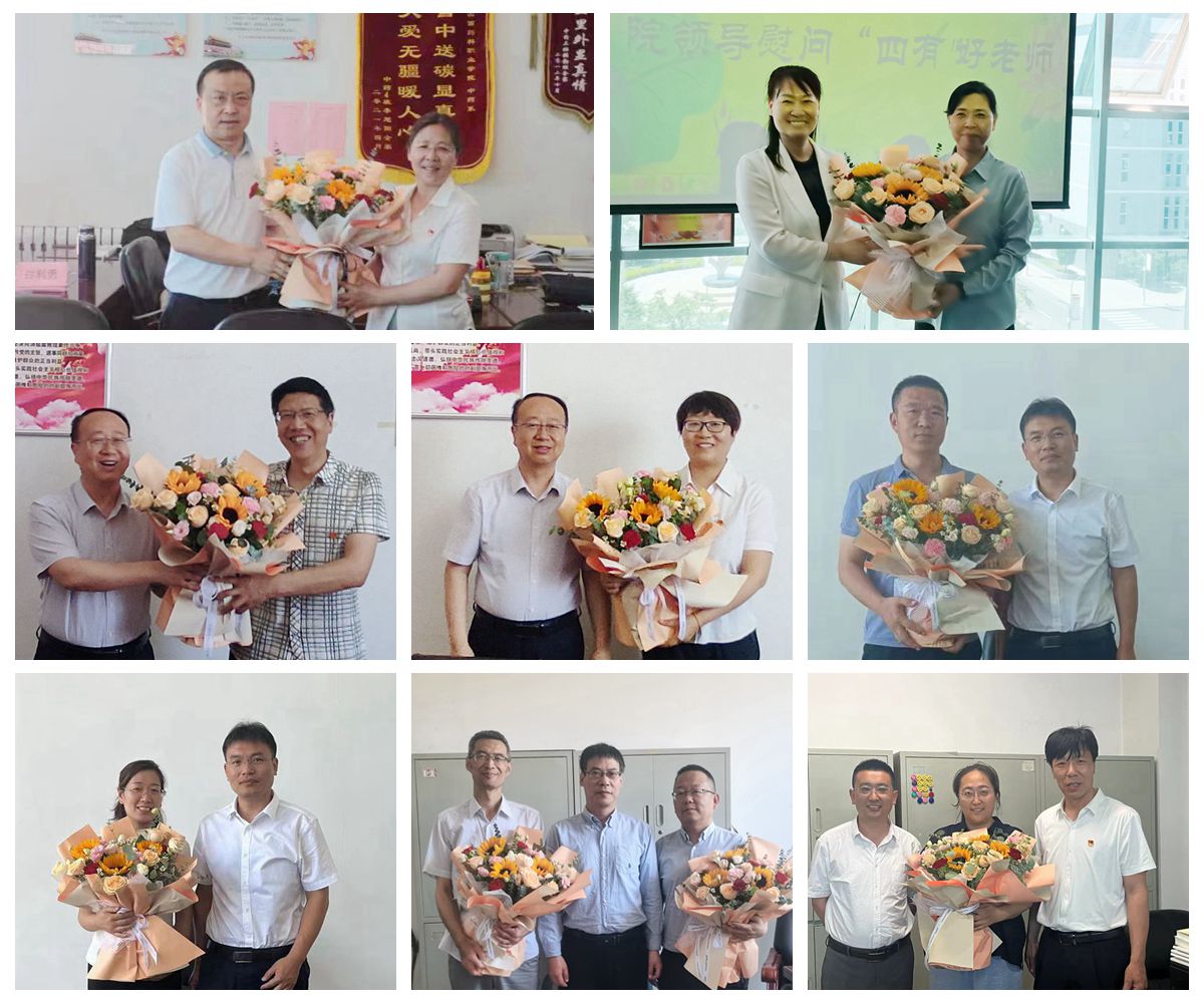 学院领导们分别向教职工代表——学院第一届“四有好老师”“先进教育工作者”们送上鲜花,感谢他们在各自工作岗位发挥先进模范作用,为学院建设和发展所作出的努力和取得的成绩。