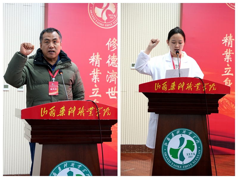 裁判员代表张立庆和参赛选手代表范佳佳分别进行宣誓。