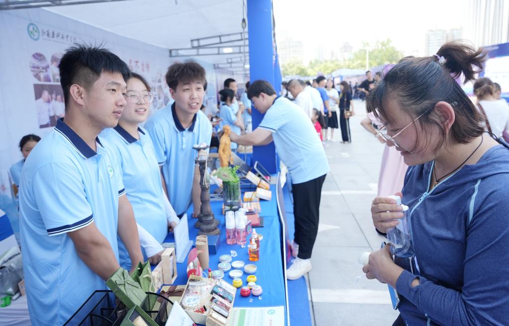 “十大晋药,名不虚传”展区,展示了中药饮片、成药、香包、茶饮等一系列“十大晋药”主题产品,同时,提供了散寒祛湿艾条制作体验,让参与者切身感受中医药文化的深厚底蕴与独特魅力。