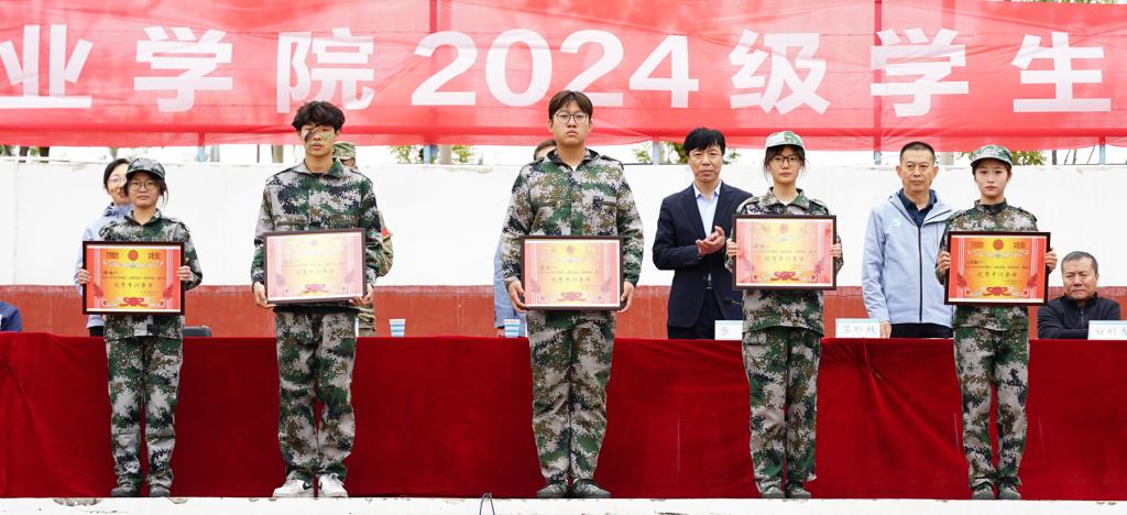 军事科目汇报表演结束后,与会领导为2024级学生军训先进集体和个人代表颁奖。