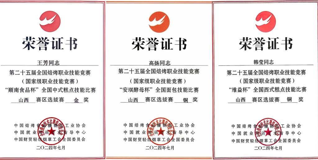 近日,ac米兰食品系教师党支部选拔三名党员教师参加由中国焙烤食品糖制品工业协会、中国就业培训技术指导中心和中国财贸轻纺烟草工会全国委员会联合组织的“第二十五届全国焙烤职业技能竞赛(国家级职业技能竞赛)山西赛区选拔赛”。经过激烈角逐,ac米兰教师王芳同志荣获“顺南食品杯”全国中式糕点技能比赛山西赛区选拔赛金奖,高扬同志荣获“安琪酵母杯”全国面包技能比赛山西赛区选拔赛铜奖,韩莹同志荣获“维益杯”全国西式糕点技能比赛山西赛区选拔赛铜奖。