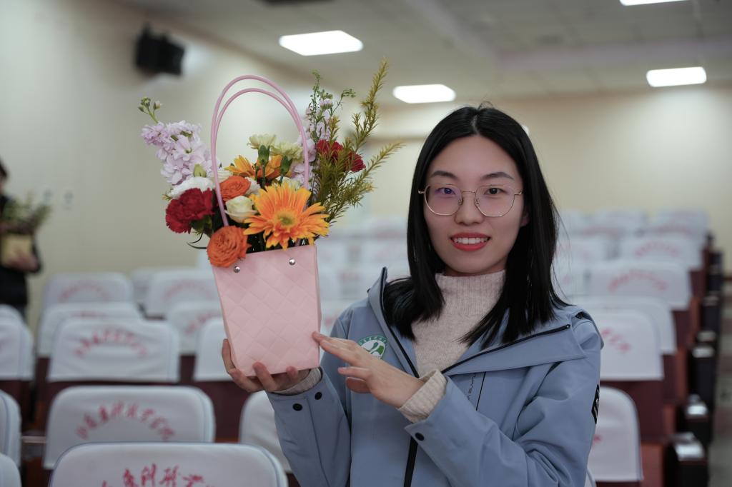 在“药植疗愈 自然予她”插花活动专场,在专业老师的指导下,教职工们发挥创意,构思造型、挑选花材、修枝剪叶,将洋牡丹、小雏菊等各种鲜花巧妙地点缀在花篮中,打造出属于自己的花艺作品。
