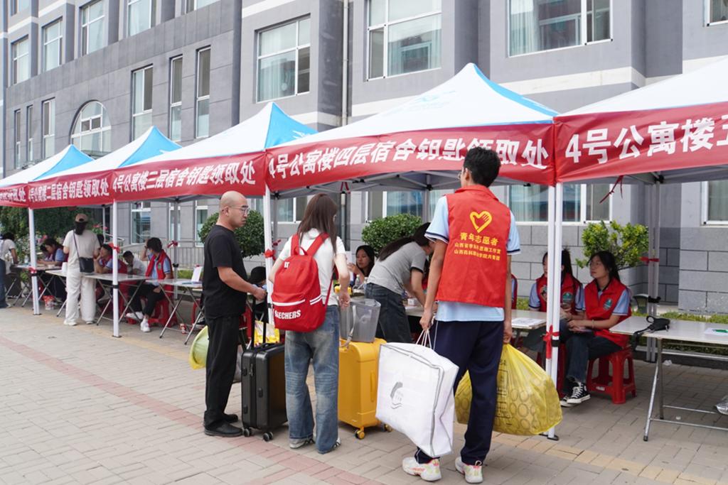 报到当天,校园内彩旗迎风,广场上、教学楼前、公寓门口装点一新,一辆辆摆渡车列阵以待,整个现场秩序井然,处处洋溢着热烈而温暖的气氛。全新上线的数字化迎新系统,让报到流程更快捷、手续更简便,获得新生和家长一致好评。爱心“绿色通道”,为家庭经济困难学生提供精准资助服务,切实减轻他们的后顾之忧。