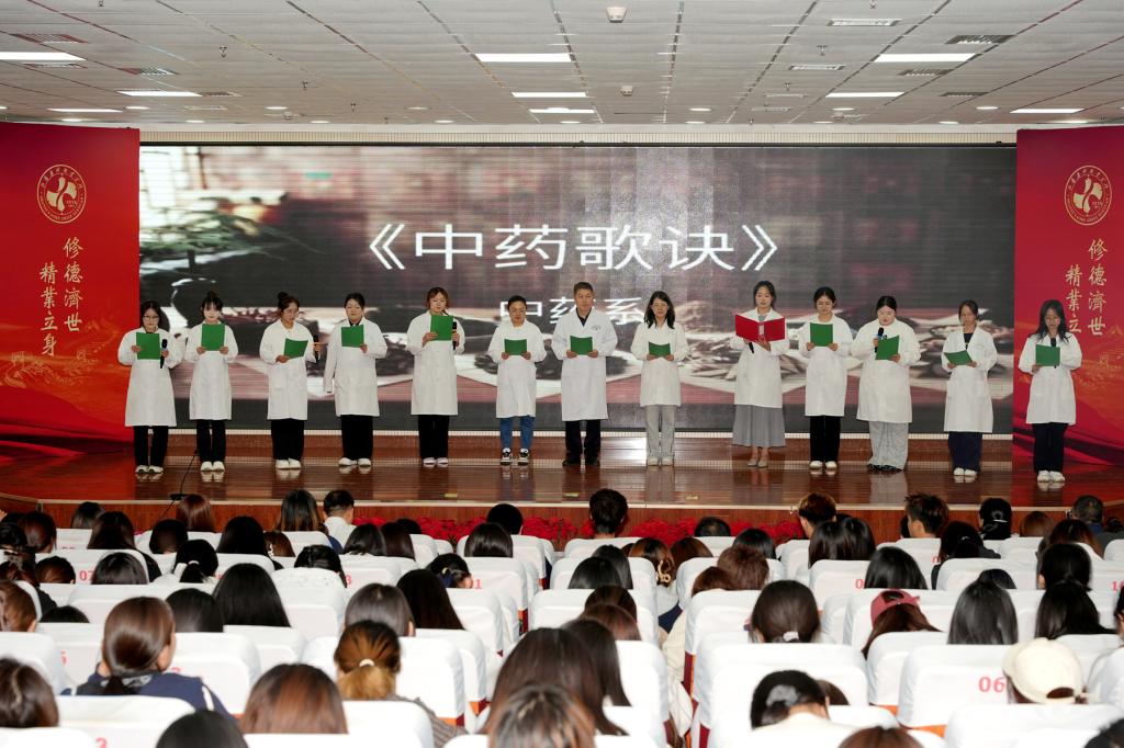 展示活动中,师生们以饱满的热情、标准的语言尽情演绎经典篇目,展示师生才艺。由素质教育教学研究部王晶老师指导的歌伴舞《菩萨蛮》、男声四重唱《月满西楼》、二声部合唱《江畔•独步寻花》,同学们化身诗词使者,用朗诵、歌舞等形式,带领大家穿越时空,领略经典诗词的魅力。制药系师生朗诵《雅韵华章巾帼新声》,声情并茂展现古今巾帼故事。药学系吟诵《非遗里的中国》,别具匠心,将非遗项目与经典诗词巧妙融合。化妆品医美系《颂经典文化传千年文明》、食品系《蒹葭》、医疗器械系《承雅言薪火・诵经典华章》、播音主持协会《总有一天》、中药系《中药歌诀》、《红色家书》等吟诵节目,或庄重肃穆,或清新婉约,生动诠释经典作品独特魅力,赢得现场观众热烈掌声。