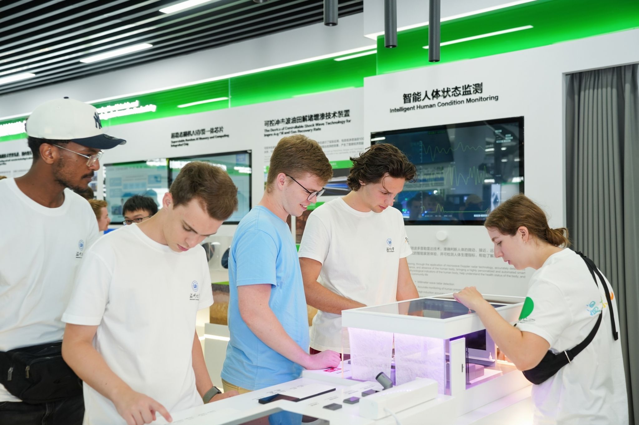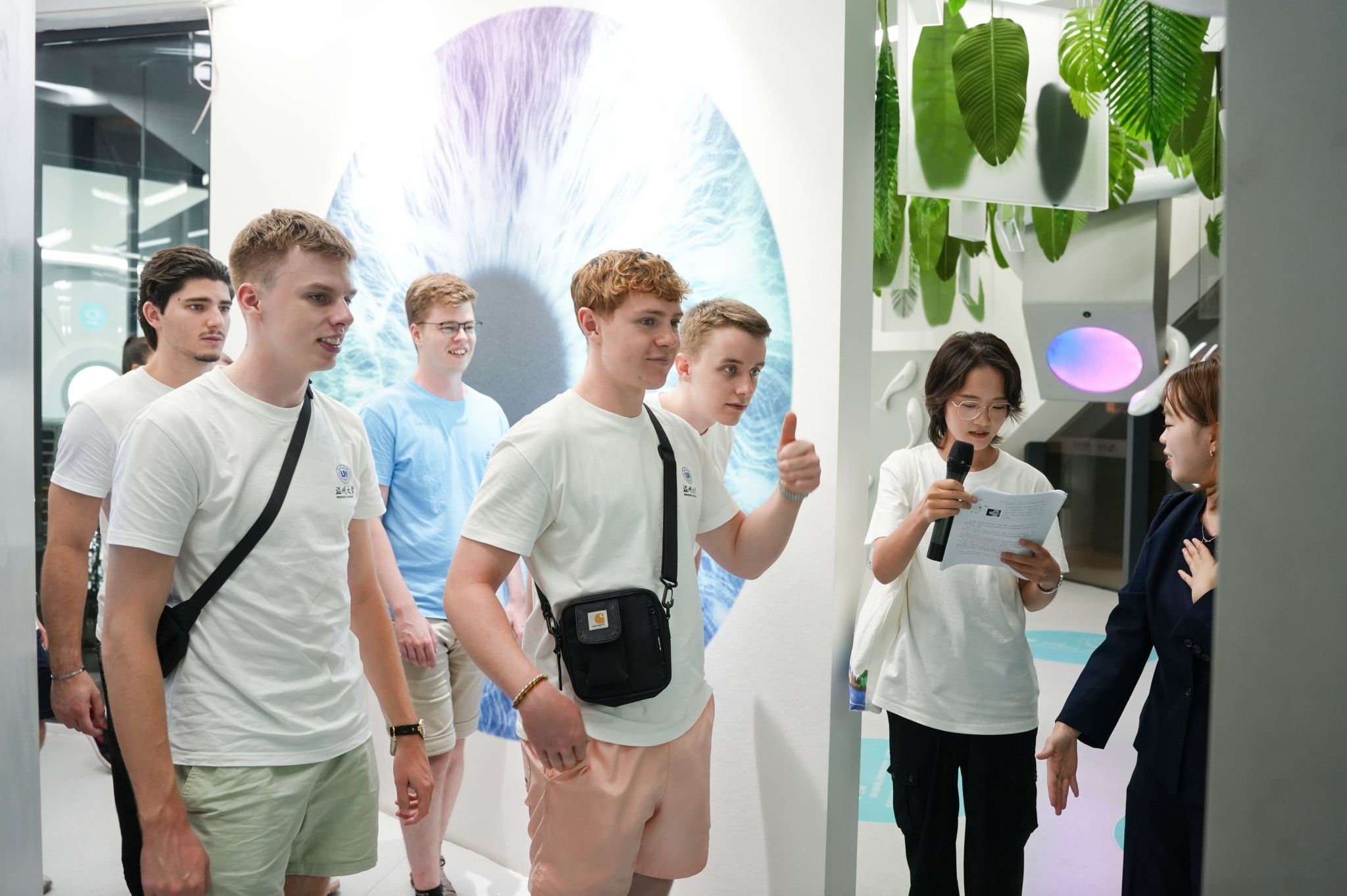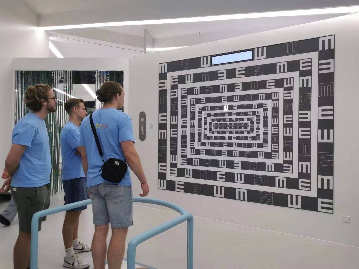 最后,德国青年学生们一行前往全国唯一的眼视光产业创新综合体——中国眼谷参观学习。科技局信息研究院潘栩副院长带领他们参观了新质生产力展厅和科普馆,了解中国新型技术和研究成果,并通过趣味性的体验设备学习关于眼睛的各种知识,德国青年学生们争相体验,纷纷点赞。