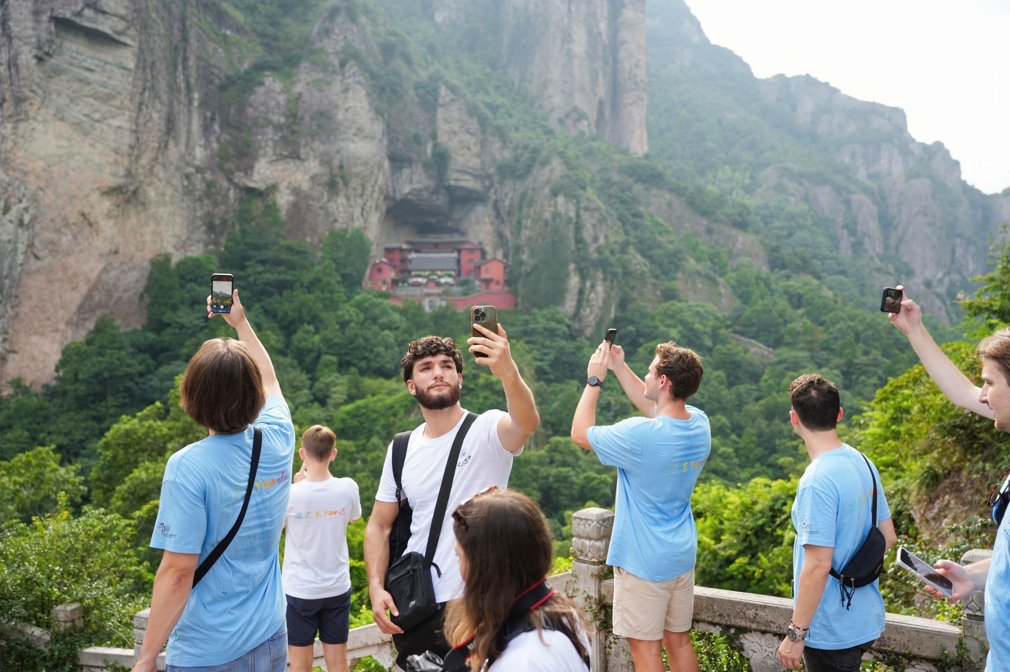 德国DHIK青年温州暑期学校的第一站是首批国家5A级景区——雁荡山森林公园。德国学生们首先参观雁荡山博物馆,了解雁荡山地质与生态情况等,而后进入雁荡景区,那一幕幕如诗如画的景色让他们陶醉。德国青年学生们在果盒桥欣中国第二大剧——越剧,感受中国戏曲的独特妆容和婉转悠长唱腔。接着游览象征忠贞不渝爱情的夫妻峰和以悬崖叠嶂、奇峰怪石与碧潭清润而著称的灵峰,并登上傲然挺立的东西瑶台,欣赏群山如黛和涧水潺潺。“Wonderful!”“Amazing!”......德国青年学生们不禁感叹温州山水的灵秀之气,被大自然的鬼斧神工所折服。