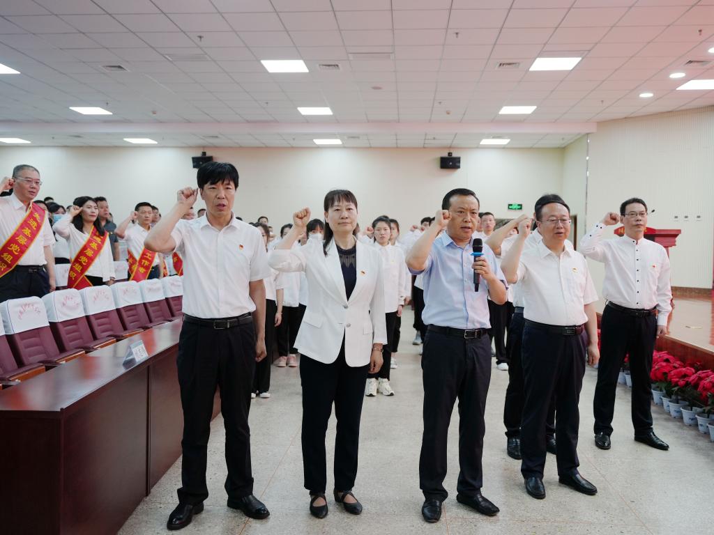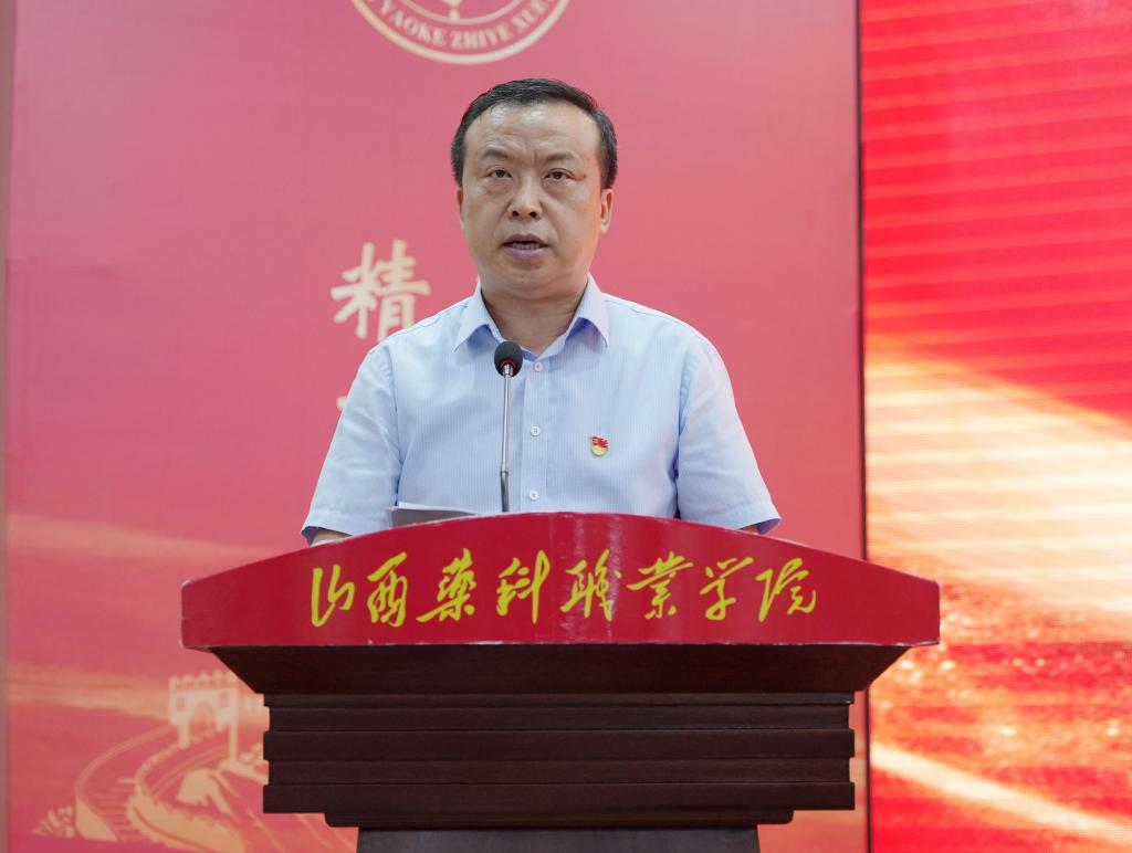 王旭以《让党旗在山西药科高质量发展新征程上高高飘扬》为题作了总结讲话。他代表学院全体党员同志向我们伟大光荣的中国共产党致以节日的祝福,向受表彰的同志表示热烈祝贺,向新党员表示热烈欢迎,向奋战在教学、管理、服务等各个岗位上的广大党员职工致以节日的问候。
