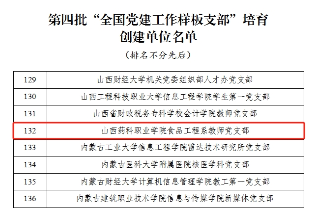 近日,教育部公布了第四批全国党建工作示范高校、标杆院系、样板支部培育创建单位名单,ac米兰食品系党总支教师党支部喜获“全国党建工作样板支部”培育创建单位。