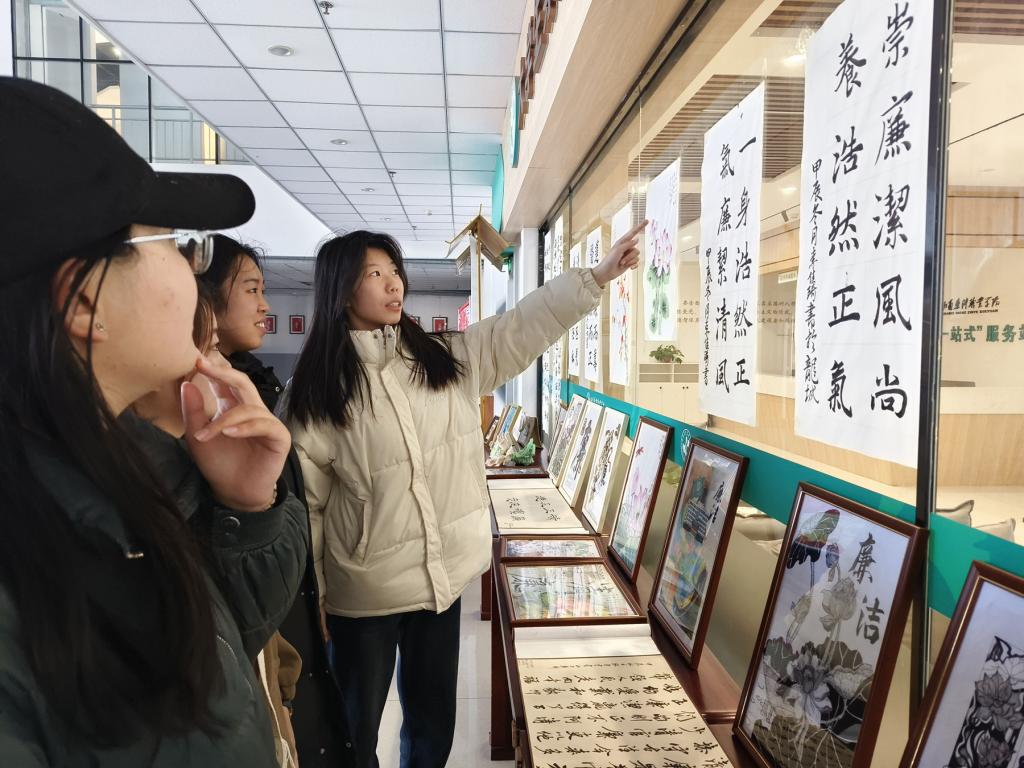 为扎实推进清廉学校示范单位创建,根据学院《关于开展第八届校园廉洁文化教育活动月的通知》要求,近日,院团委在青年学生中组织开展了“清风颂廉”大学生廉洁文化作品征集活动。经过近一个月的广泛征集,共收到全院各系青年学生报送的各类廉洁文化题材作品百余份。经过认真评比,共评选书画类、手工类、征文类优秀作品45件并在综合楼二楼大厅展出,吸引了众多师生前往现场驻足参观。