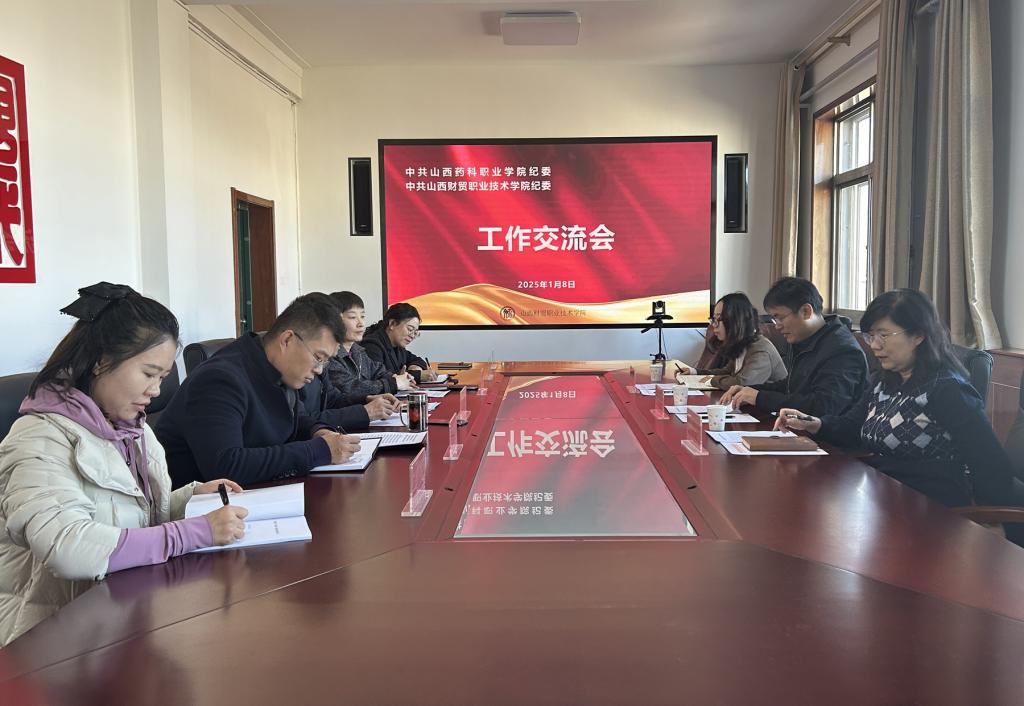 为进一步提升学院纪检监察干部履职能力,学习兄弟院校好做法好经验,1月8日,学院党委委员、纪委书记、监察专员庄东军带领纪检监察机构党员干部赴山西财贸职业技术学院开展学习交流。山西财贸职业技术学院党委委员、纪委书记高宇东,纪委副书记罗丽娟等接待了学院纪检监察干部一行。