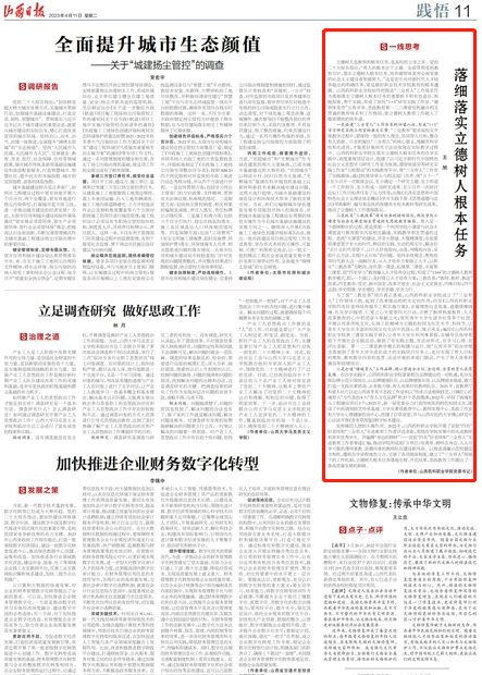 《山西日报》刊发ac米兰党委书记王旭署名文章:落细落实立德树人根本任务