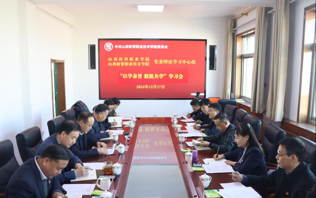 为进一步提升党委理论学习中心组学习质量,加强与兄弟院校党委理论学习中心组的交流互动,实现以学增智、以学促干,12月17日下午,学院党委书记王旭带领党委成员赴山西财贸职业技术学院开展联组共学。山西财贸职业技术学院党委书记乔忠华主持会议。会议传达学习了全省教...2024-12-18 -